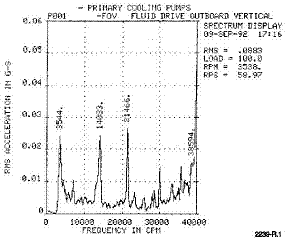송풍기에서 권고되는 진동 경보치는 9.5mils pp입니다. 주어진 송풍기의 회전수가 150rpm (2.5Hz)이며, 1x 경보치는 작은 속도값을 생성할 것입니다. (0.075ips) 가속도값은 더욱 작은 값을 지시합니다. (0.003g) 매우 낮은 노이즈 특성을 가진 500mV/g 압전 세라믹 가속도 또는 저주파용 압전형 속도센서(PVT)가 대부분의 냉각탑에 설치하도록 권고됩니다.