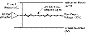 대부분의 압전형 가속도계는 AC 진동 신호를 전송할 수 있도록 DC 바이어스 전압을 출력합니다. 측정장치는 AC 진동신호를 측정하기 전에 반드시 DC 바이어스 전압을 제거하여야 합니다. DC 신호를 제거하기 위해 필터링(Filtering)과 차동 보상(Differential Cancellation) 기법 두 가지 입력 회로가 사용됩니다.